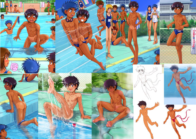 「海の家 たけのこ」のアルバイトに応募するも、思っていたのとは全く違う仕事をすることになってしまいます。大勢の男性客に次々と貫かれ注ぎ込まれたり、ぴんぴんのに案内板をぶら下げて集客したり。また、プールで水着が脱げてしまい、まだ皮に包まれたのがぷるんと露わになってみんなに見られてしまったりも。海やプールで夏を開放的に満喫する、こんがりとよく日に焼けた芳ばしい少年たちを存分にご覧ください。