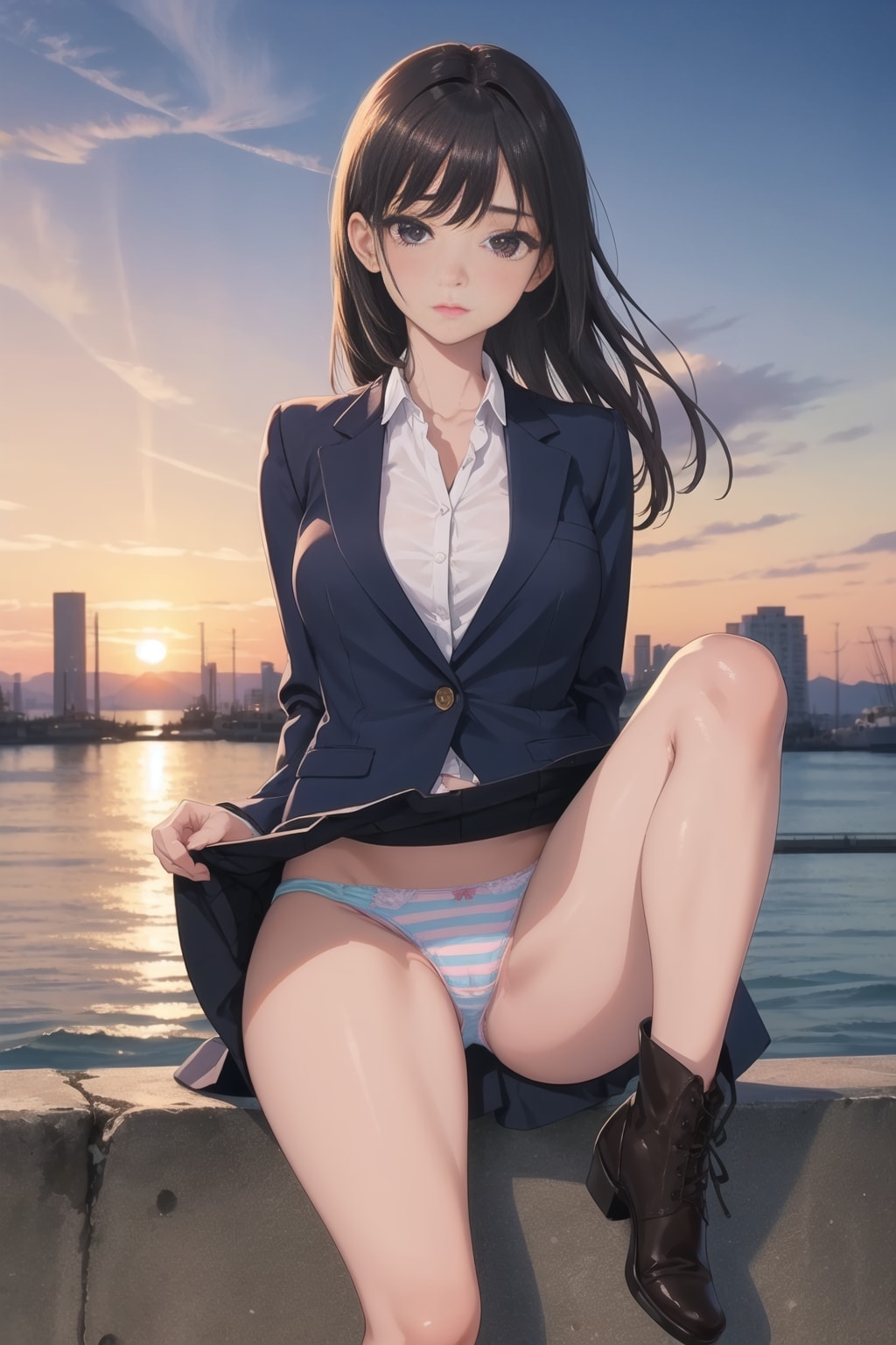 スカートをたくし上げてパンツを見せて