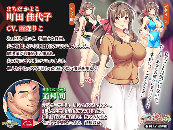 普段のセックスにマンネリを感じていた主人公が“寝取らせ”の魅惑に目覚め新たな快感を求める物語。