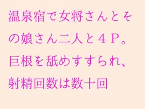 温泉宿で女将さんとその娘さん二人と4P。巨根を舐めすすられ、射精回数は数十回