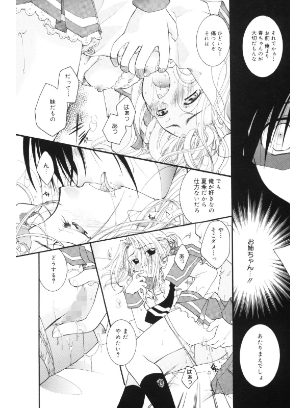 自慢のお姉ちゃんと同じ年の幼馴染の将兄ちゃんにあこがれている春ちゃん。ところがある日、お姉ちゃんと将兄ちゃんがSEXしているところを目撃してしまう。(ヒミツの片想い)
