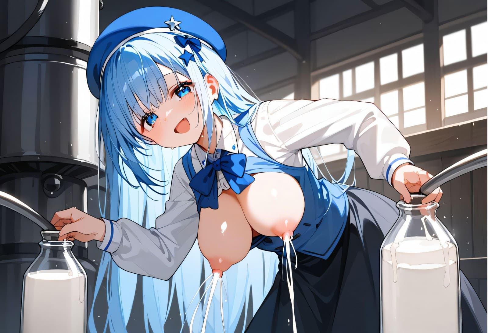 牛乳を飲み母乳を出す
