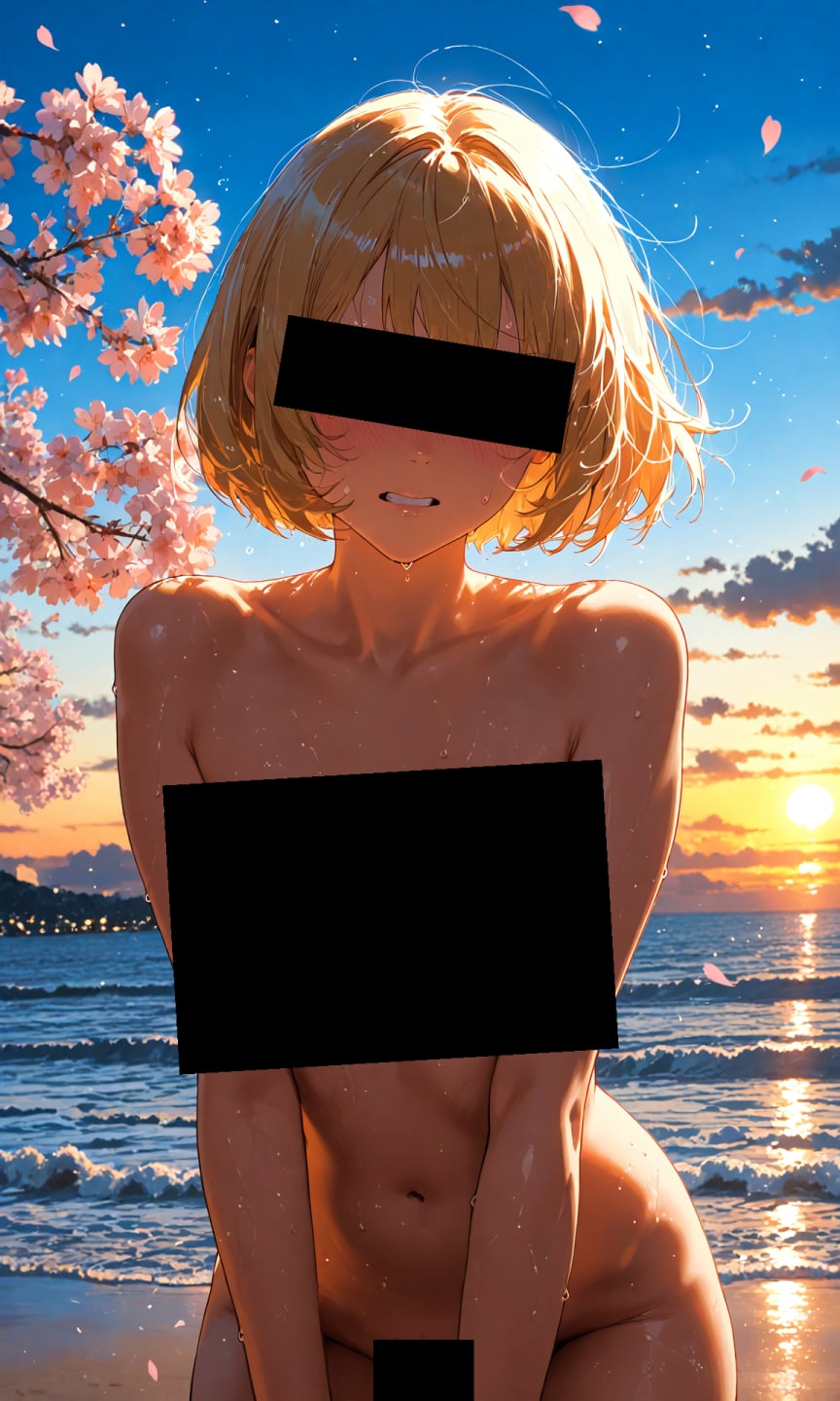 金髪貧乳美少女のえっちなCG集〜春の雲の多い夕方の海編〜