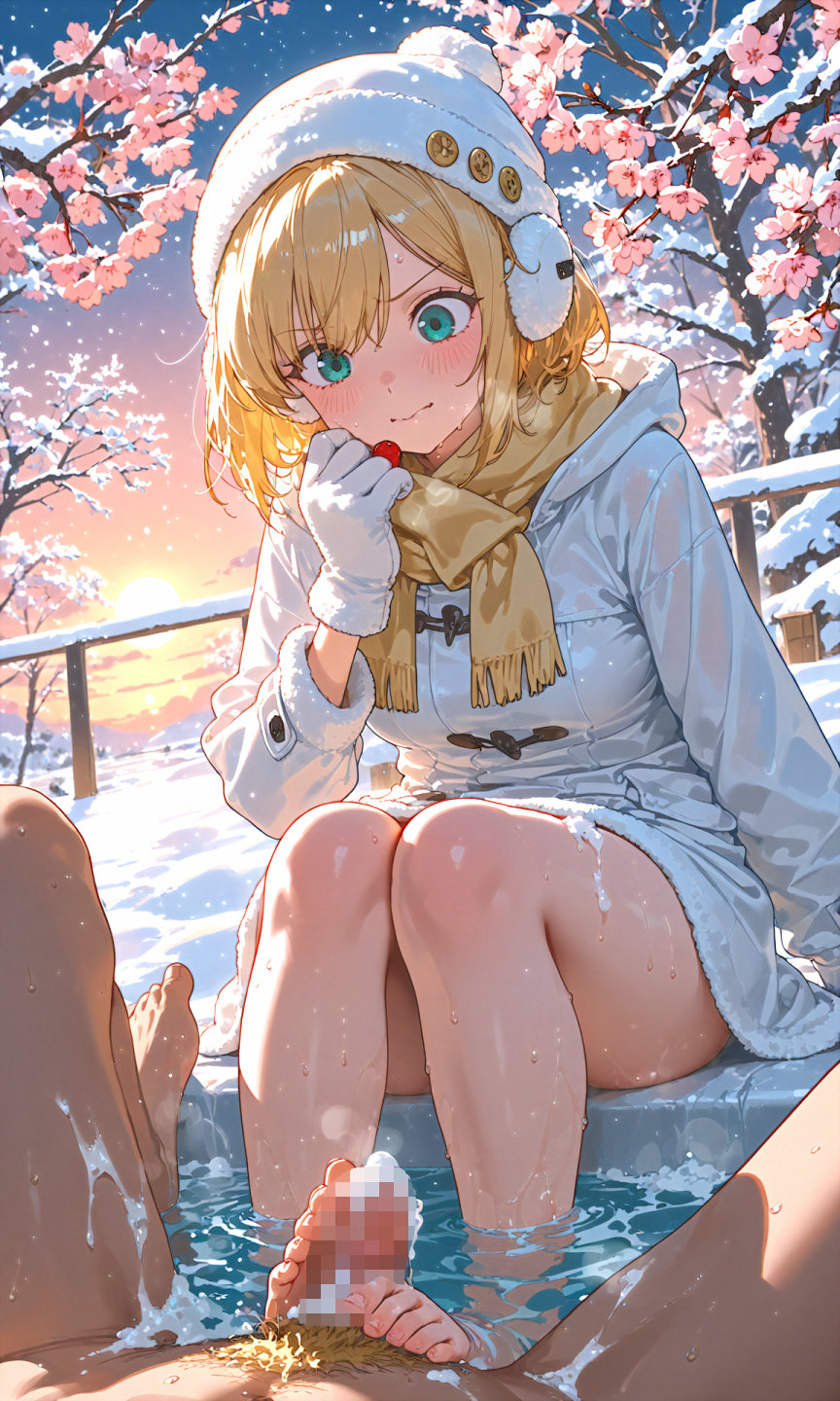 金髪貧乳美少女のえっちなCG集vol.45〜春の雪の夕方の風呂編〜