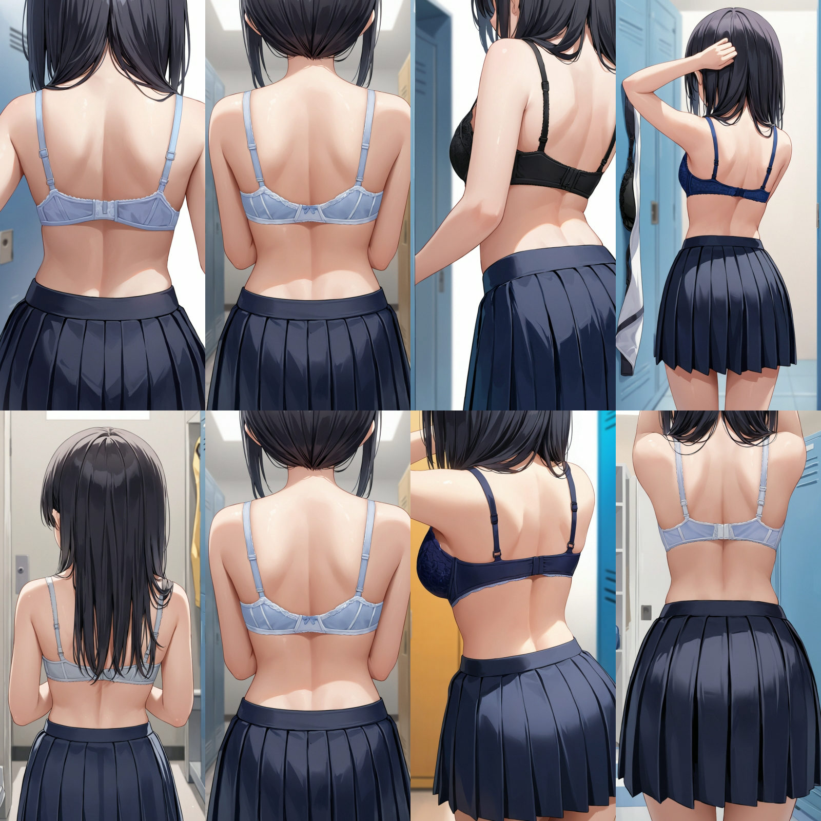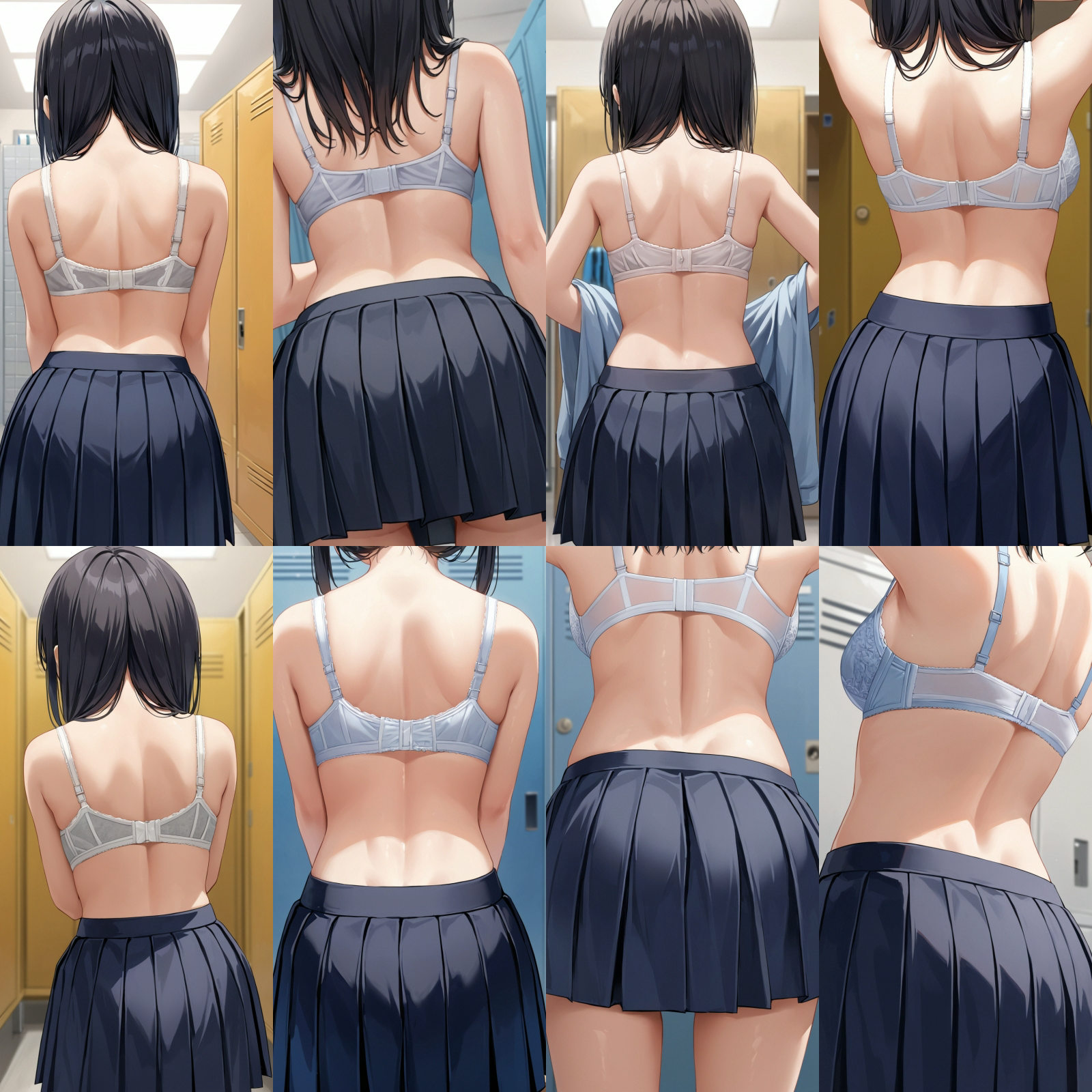 女子○生、後ろ姿、下着、ブラジャー、パンティー、スカート、女子更衣室