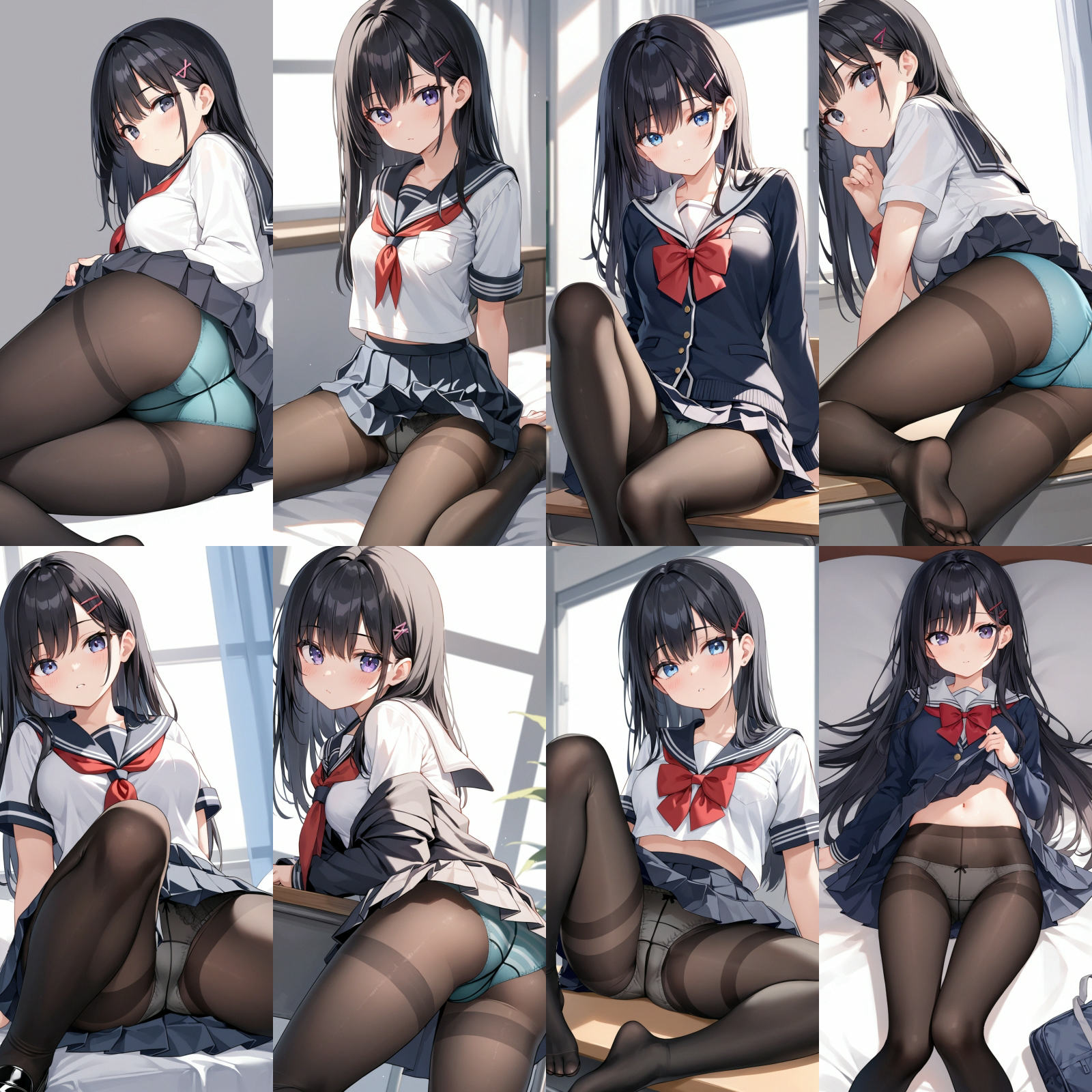 女子○生、女友達、黒タイツ、おパンティーのみ、