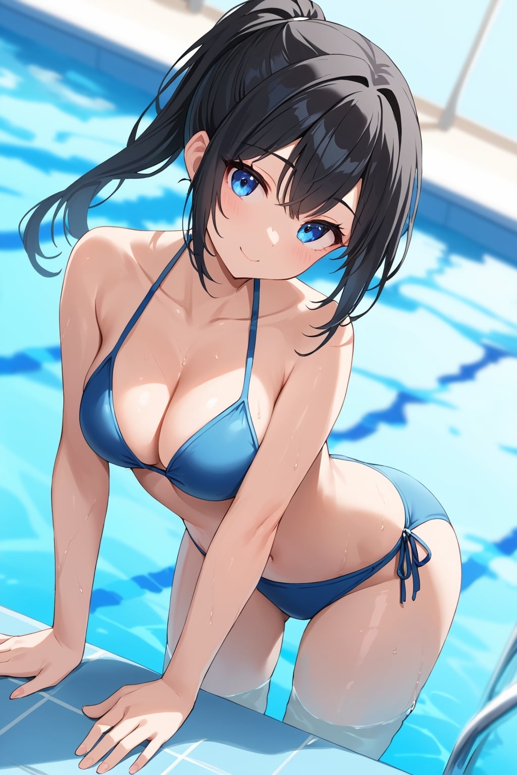 彼女、水着、プール、お尻、四つん這いポーズ、開脚ポーズ、全身