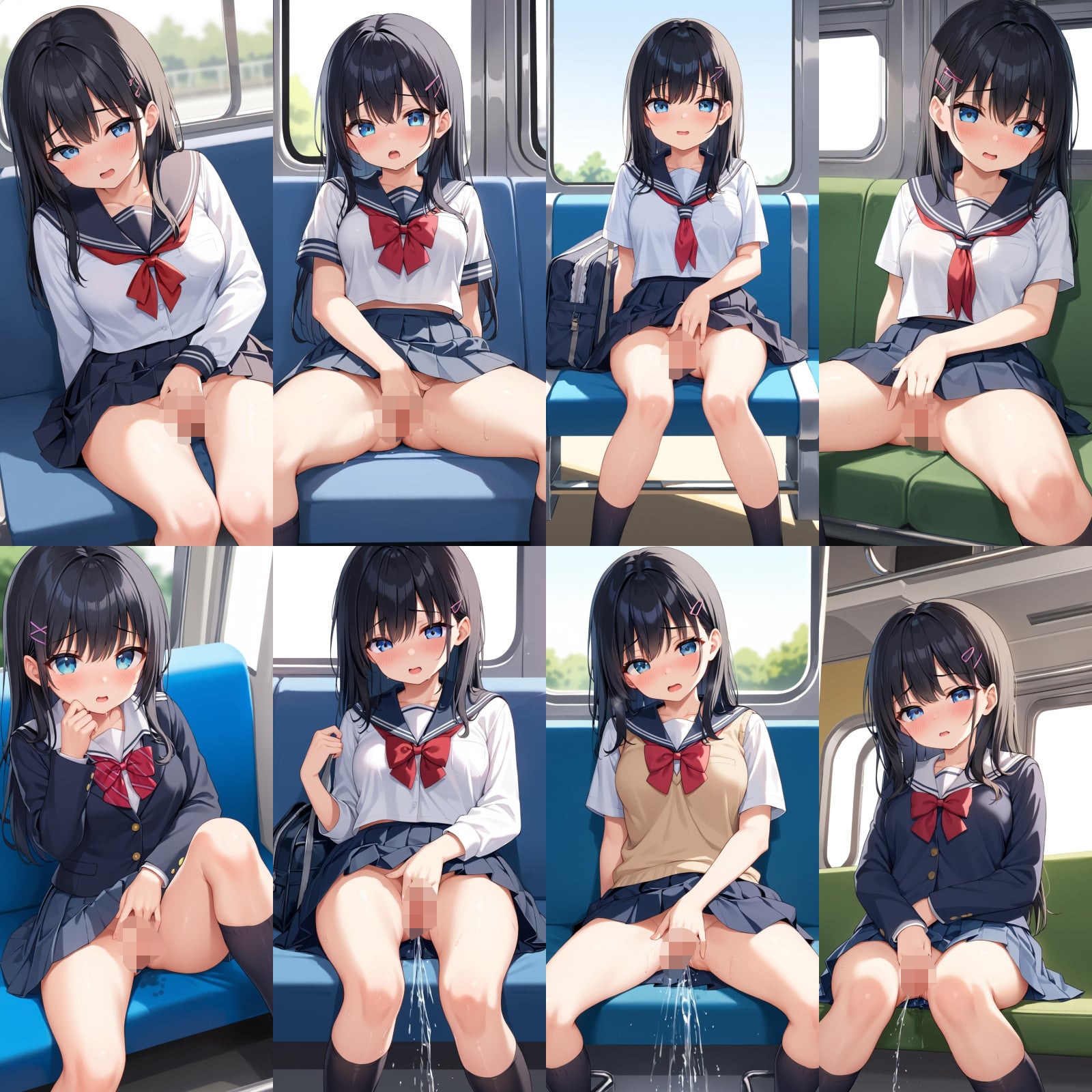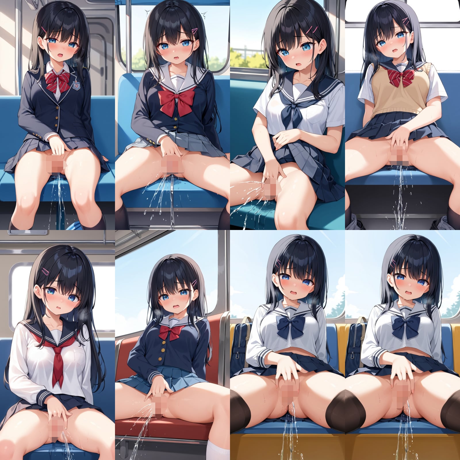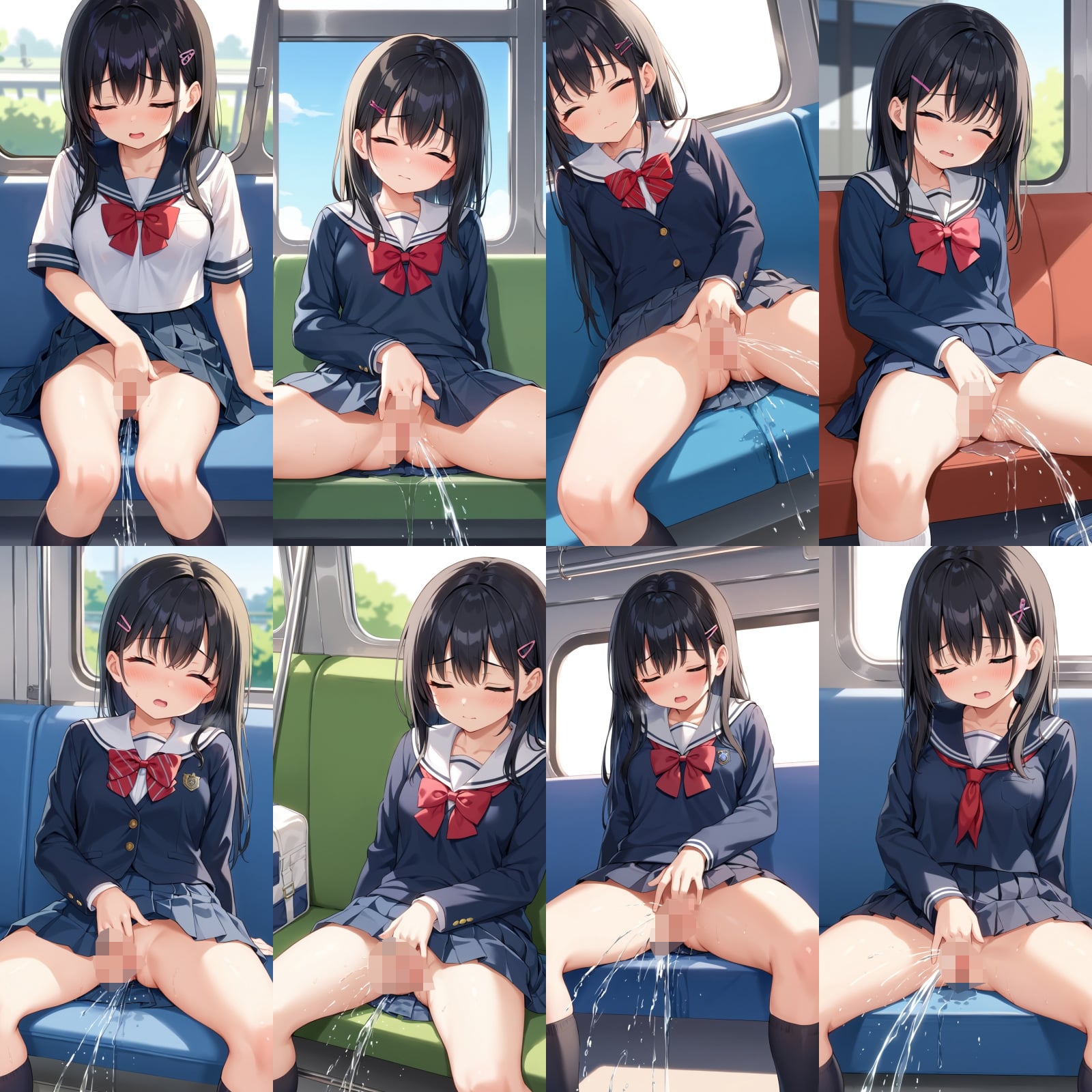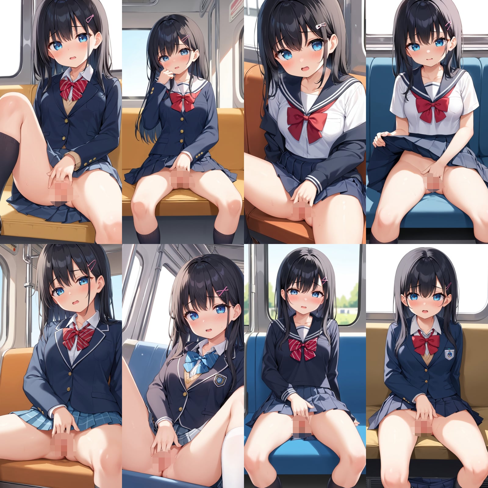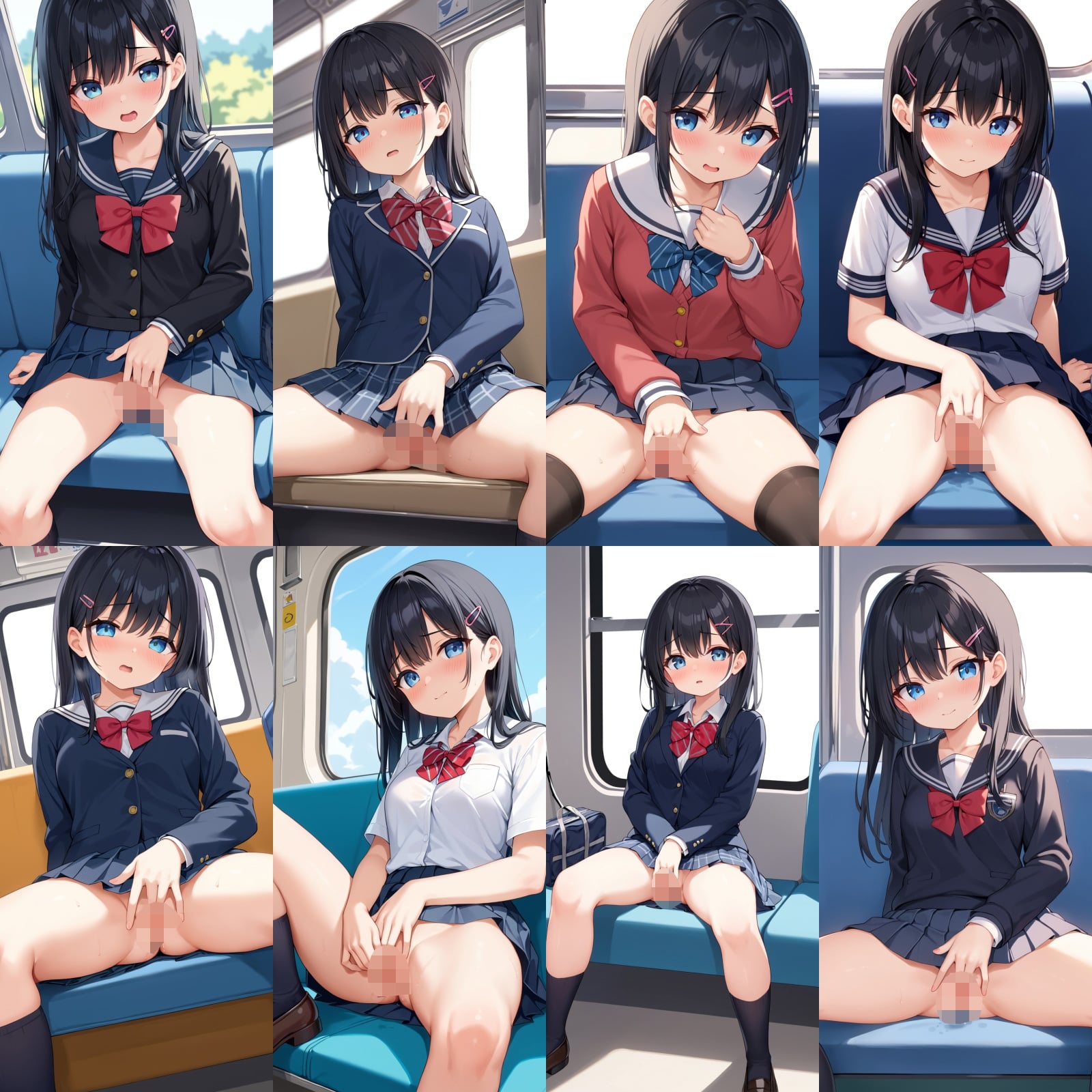 女子○生、制服、黒髪、オナニー、潮吹き、お座り、電車など