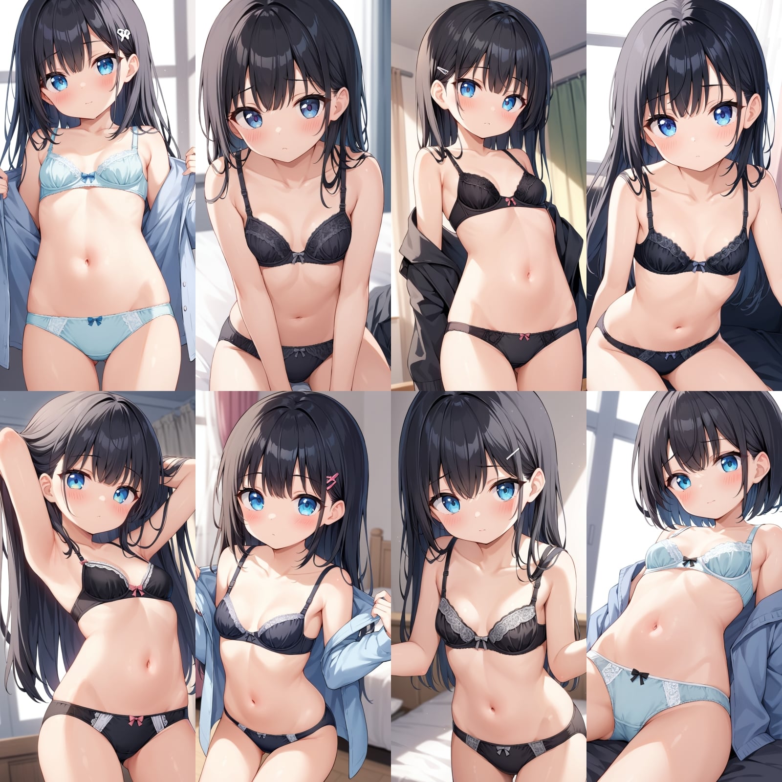 貧乳、下着、おパンティー、ブラジャー、照れた表情、表情付き、部屋など