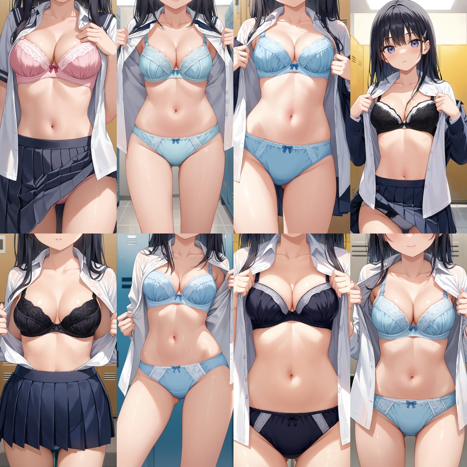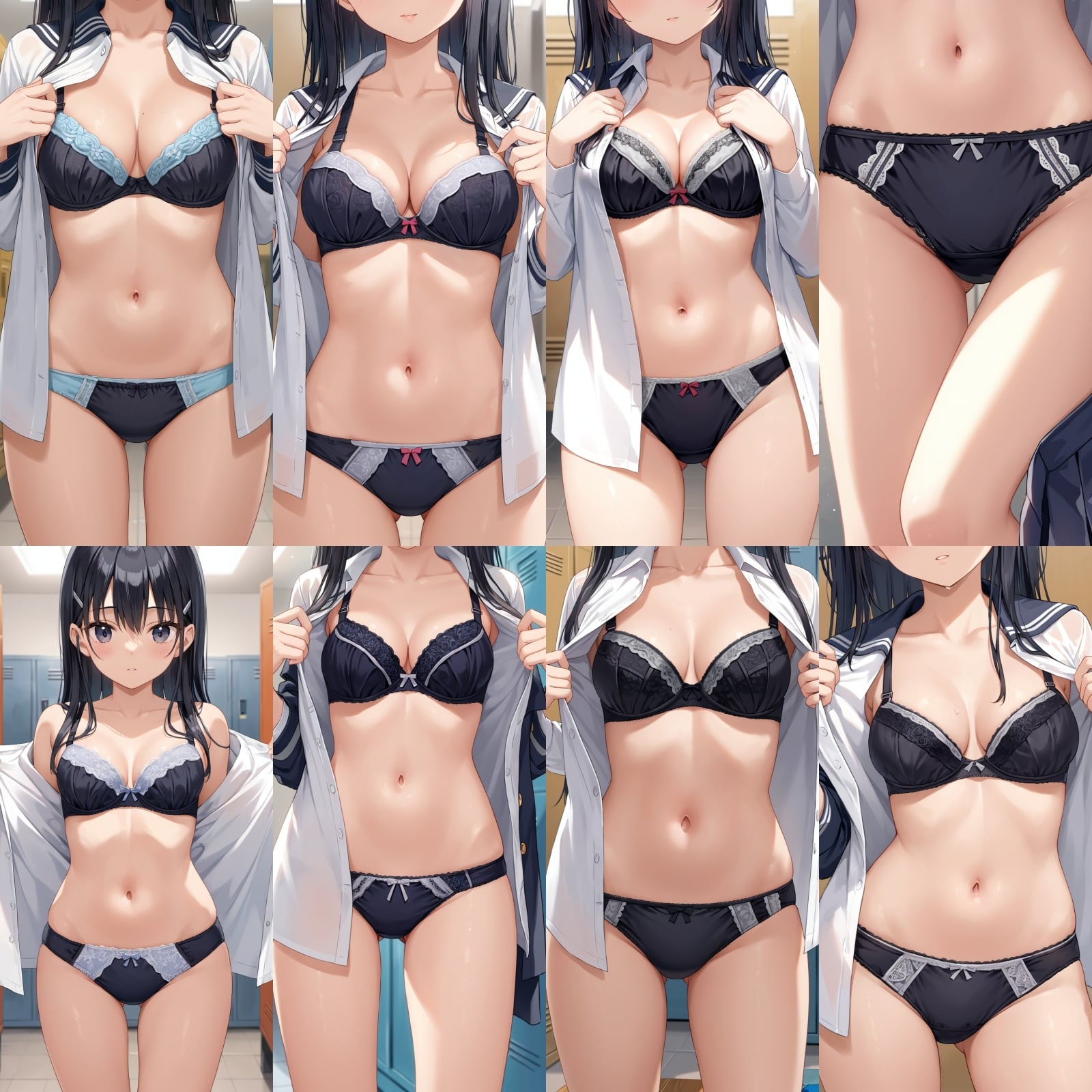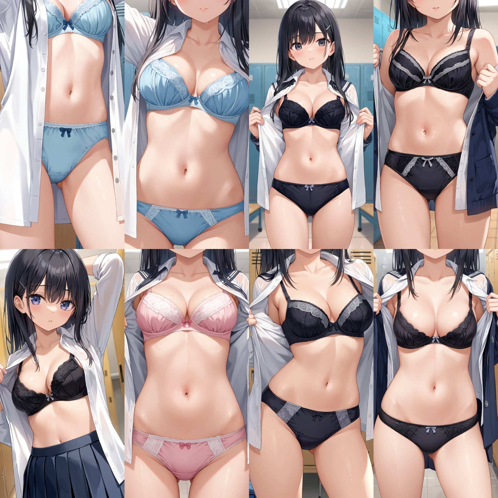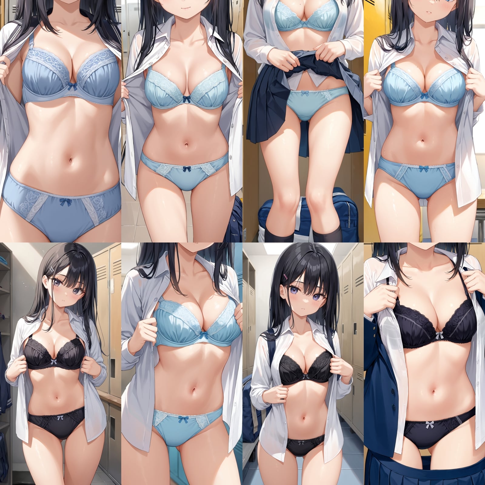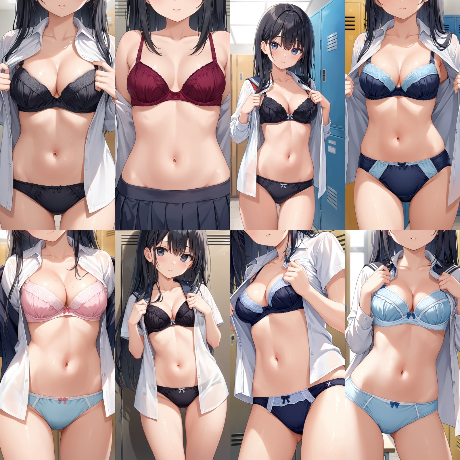男子禁制、下着、ブラジャー、パンティー、制服、シャツ、全身、女子更衣室