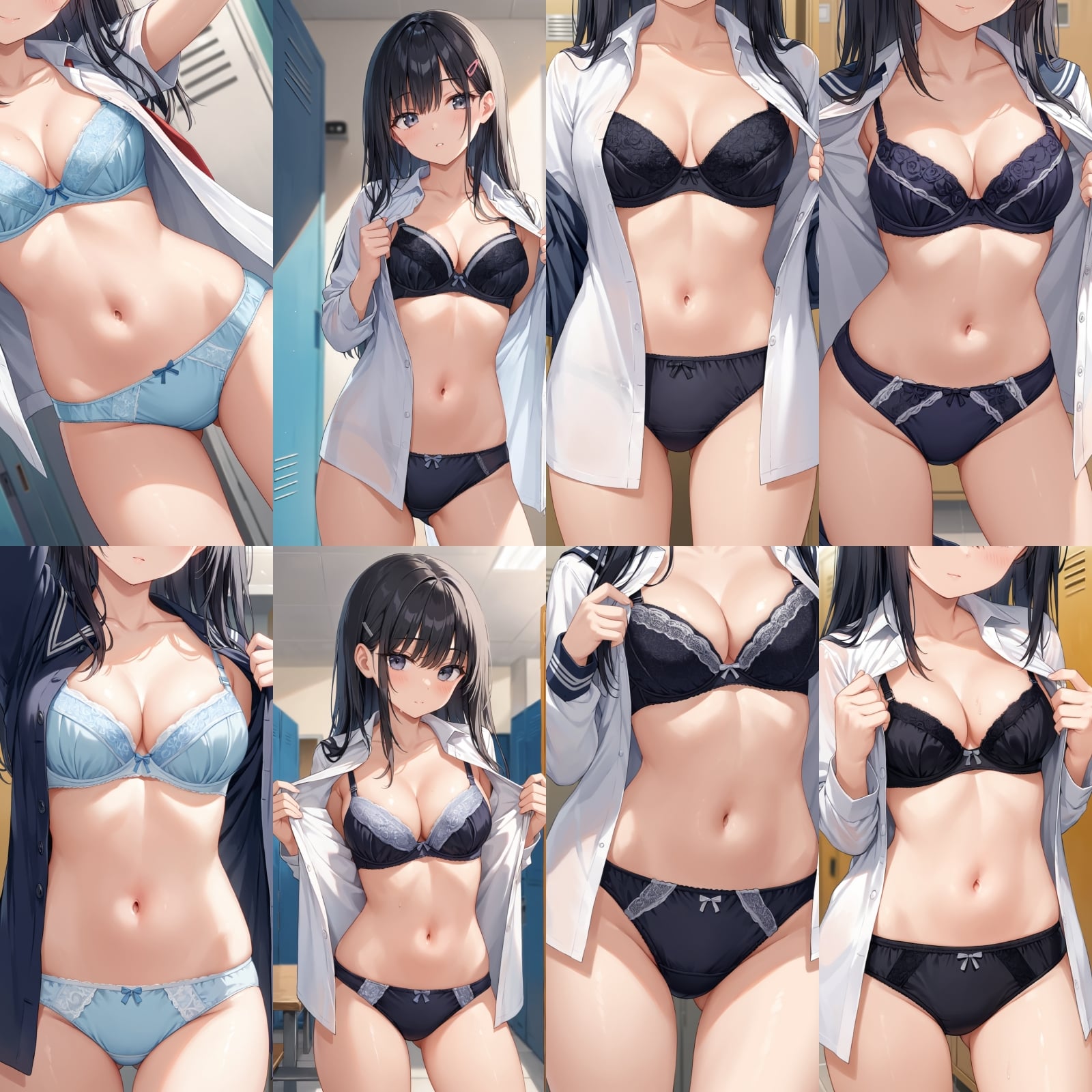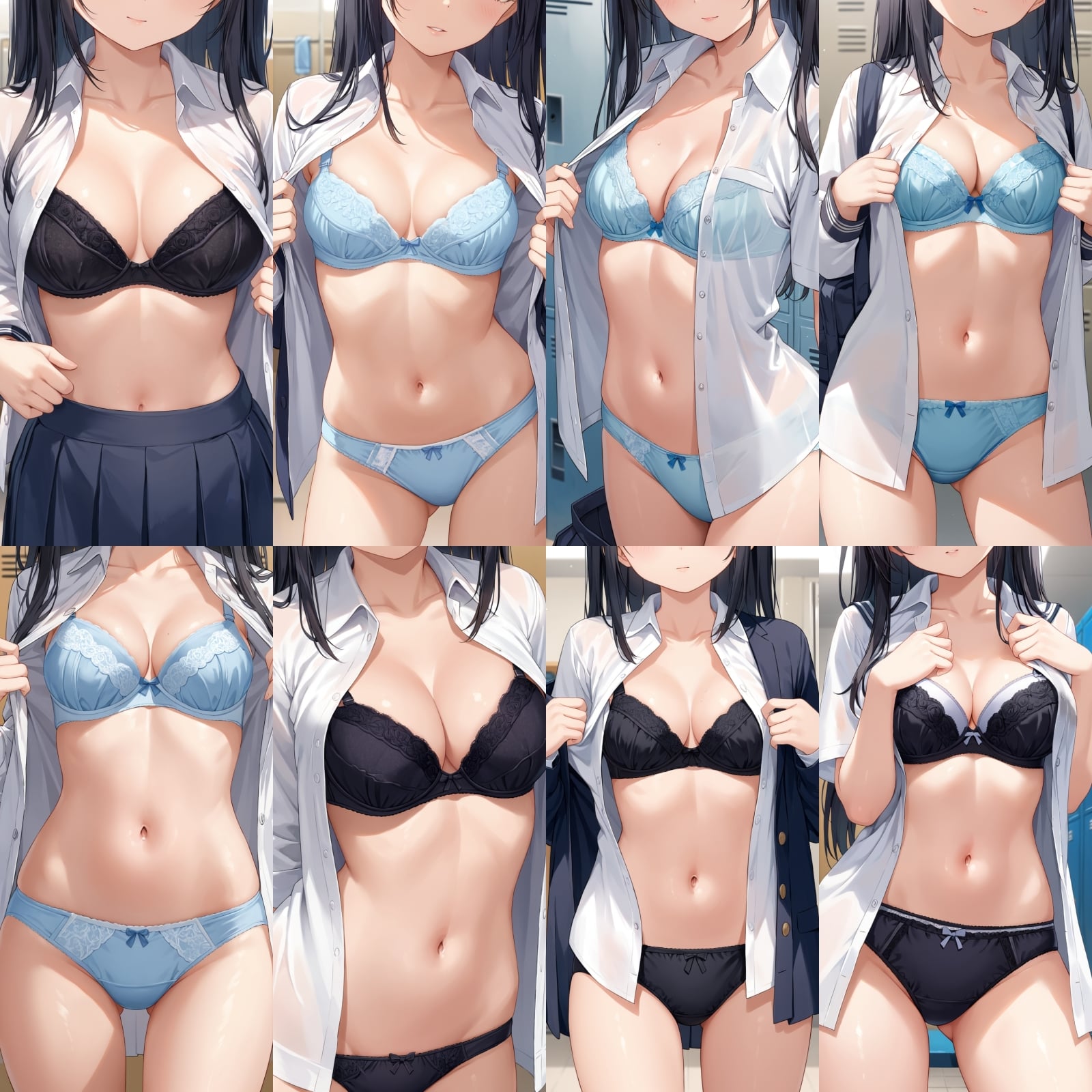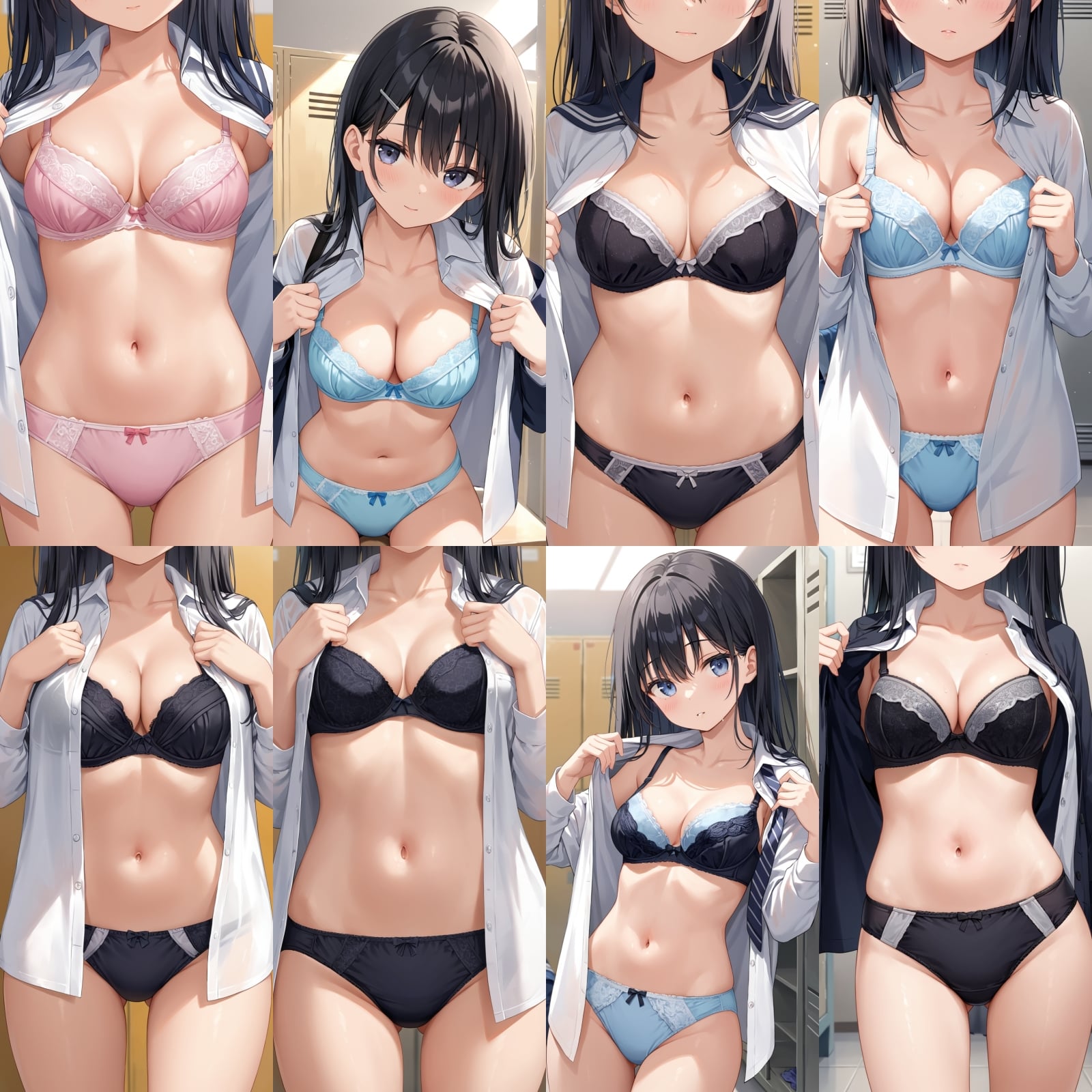 男子禁制、下着、ブラジャー、パンティー、制服、シャツ、全身、女子更衣室