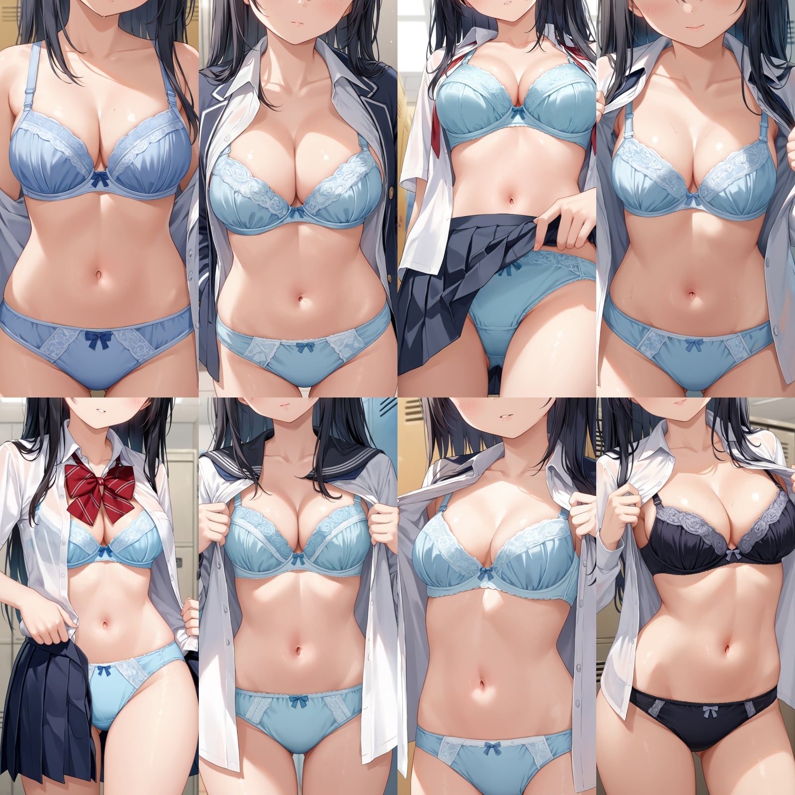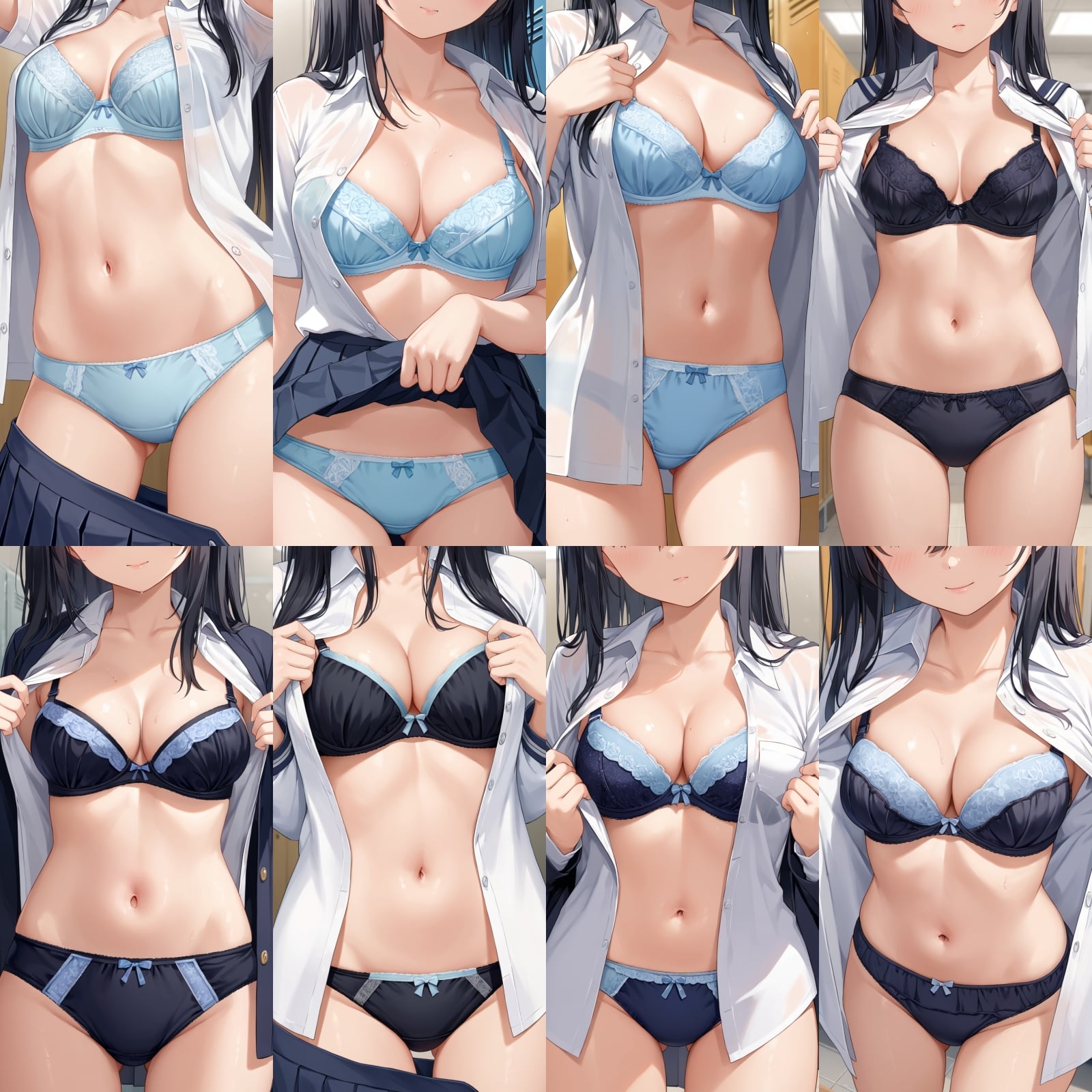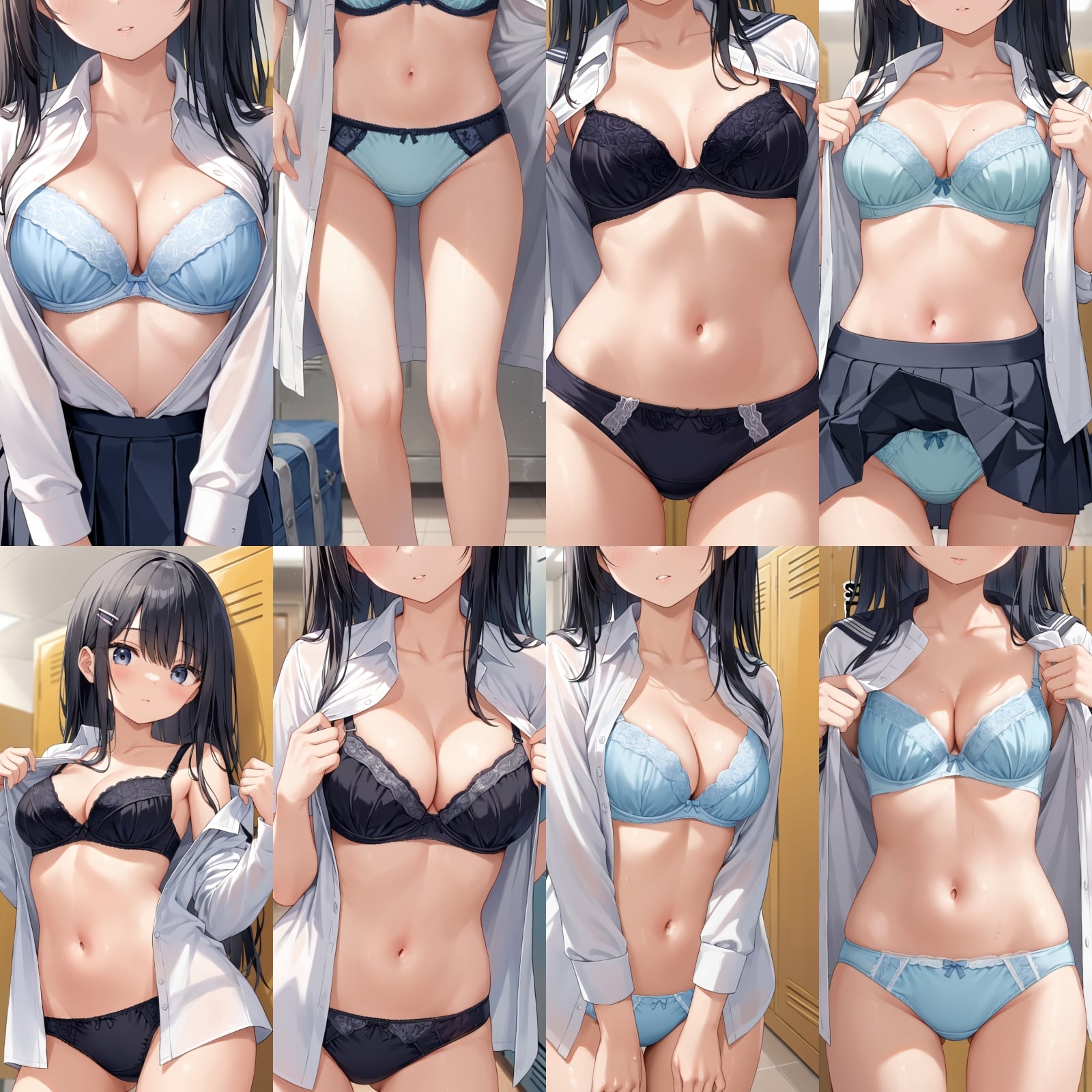 男子禁制、下着、ブラジャー、パンティー、制服、シャツ、全身、女子更衣室