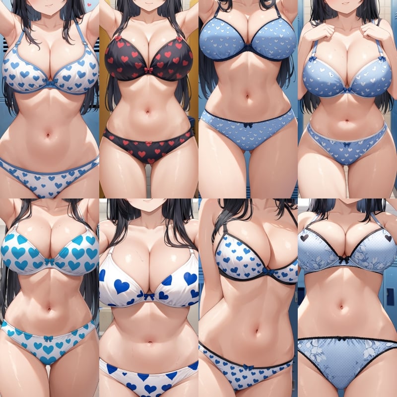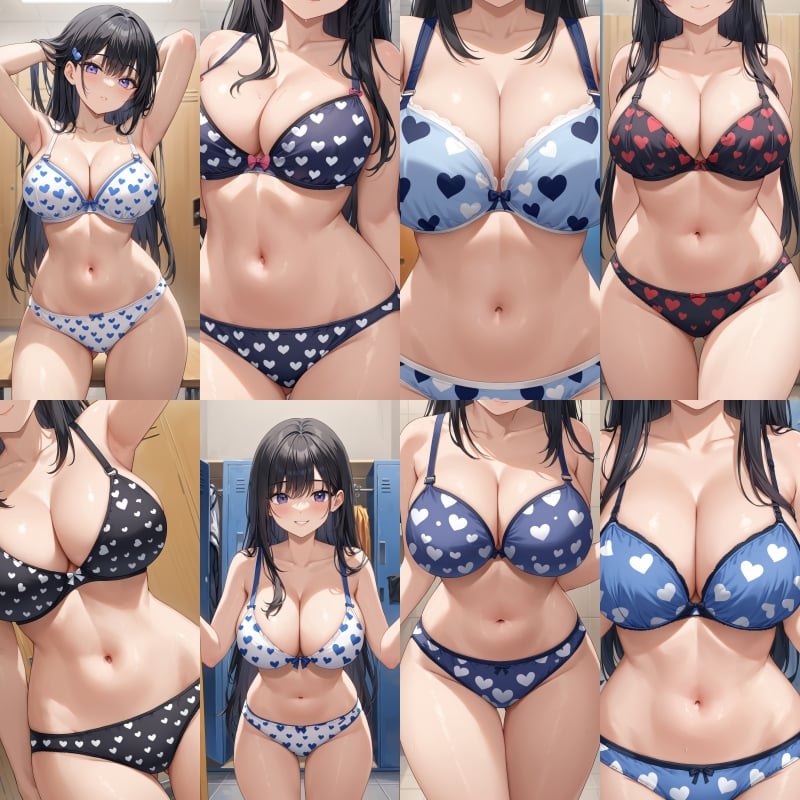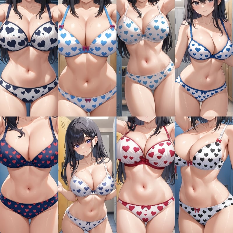 下着、ブラジャー、パンティー、ハート柄、