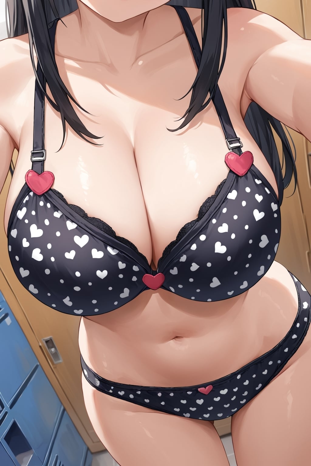 女子更衣室で巨乳女子のハート柄下着姿を盗撮しました