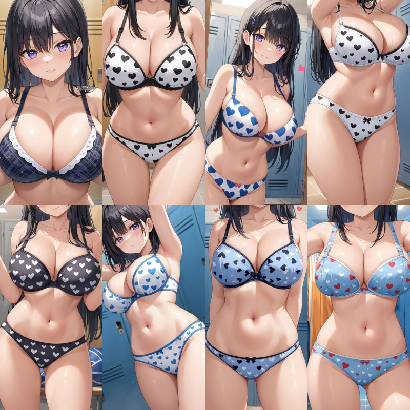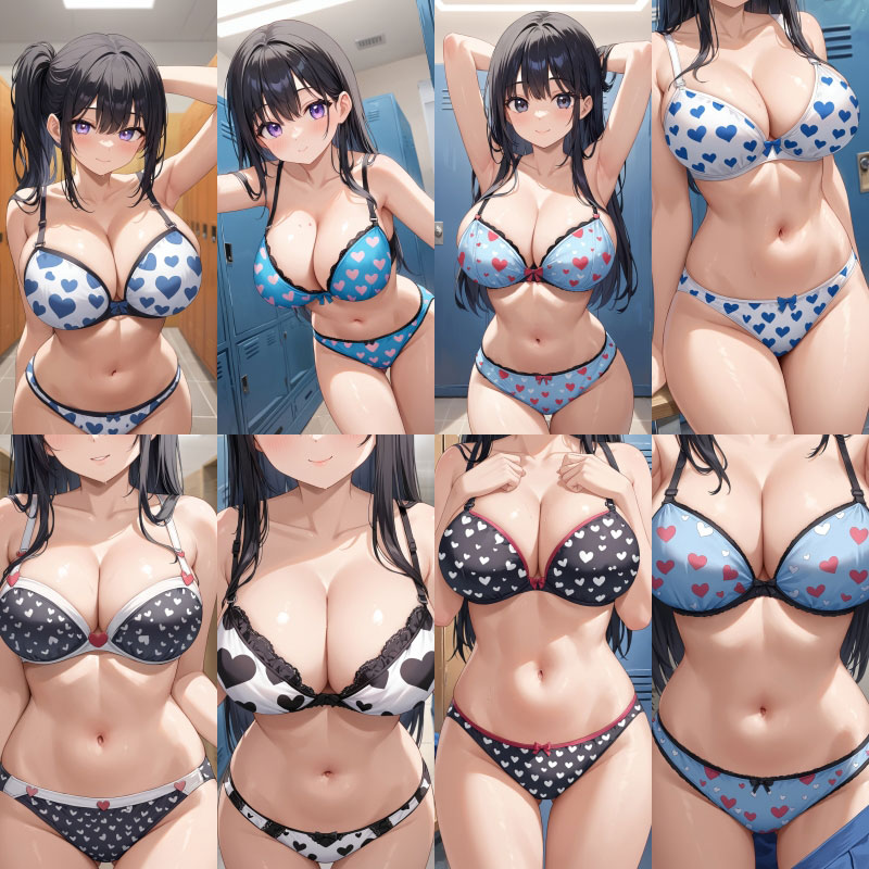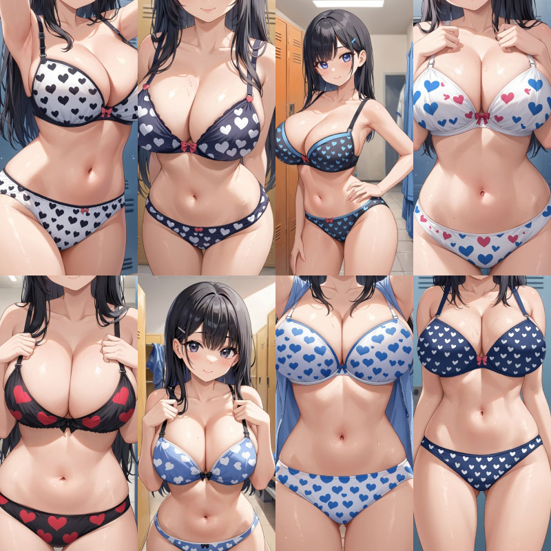 下着、ブラジャー、パンティー、ハート柄、