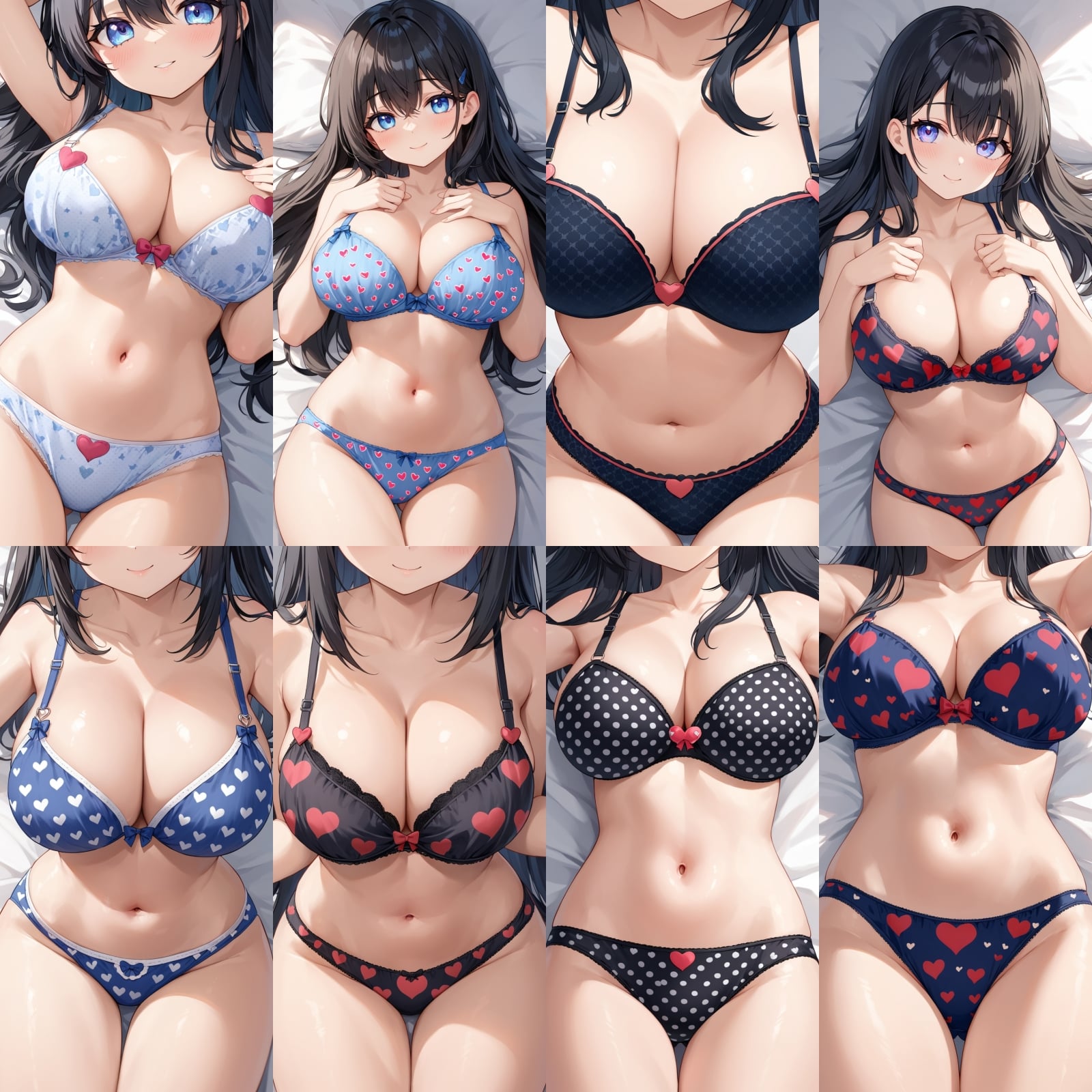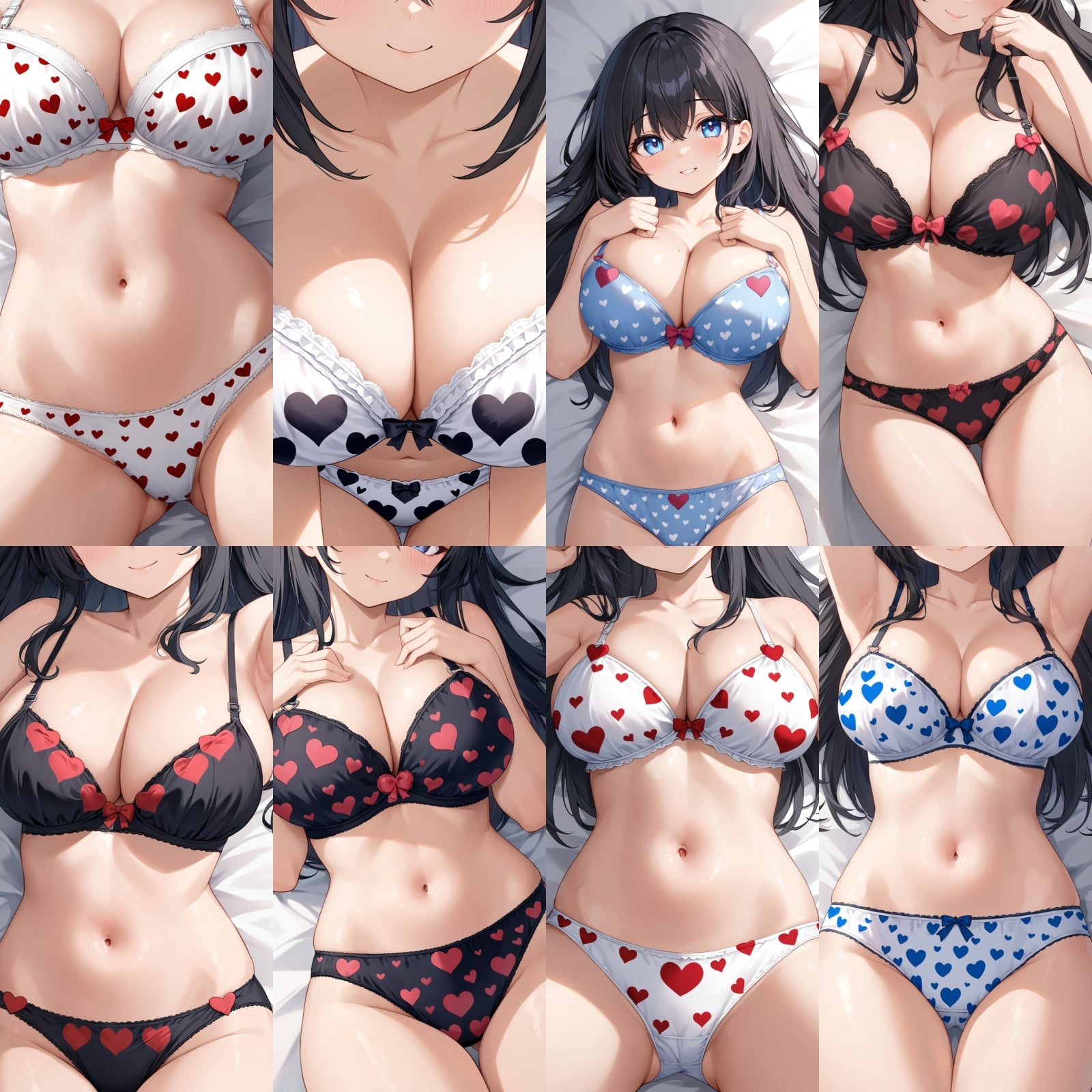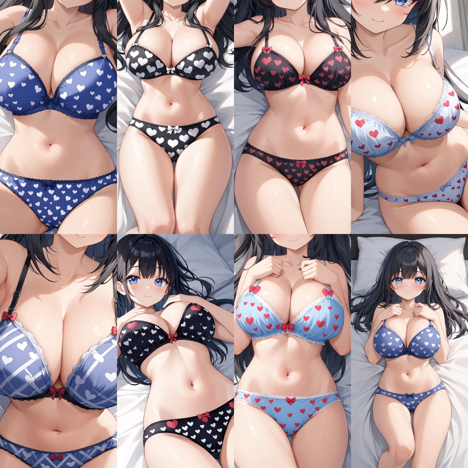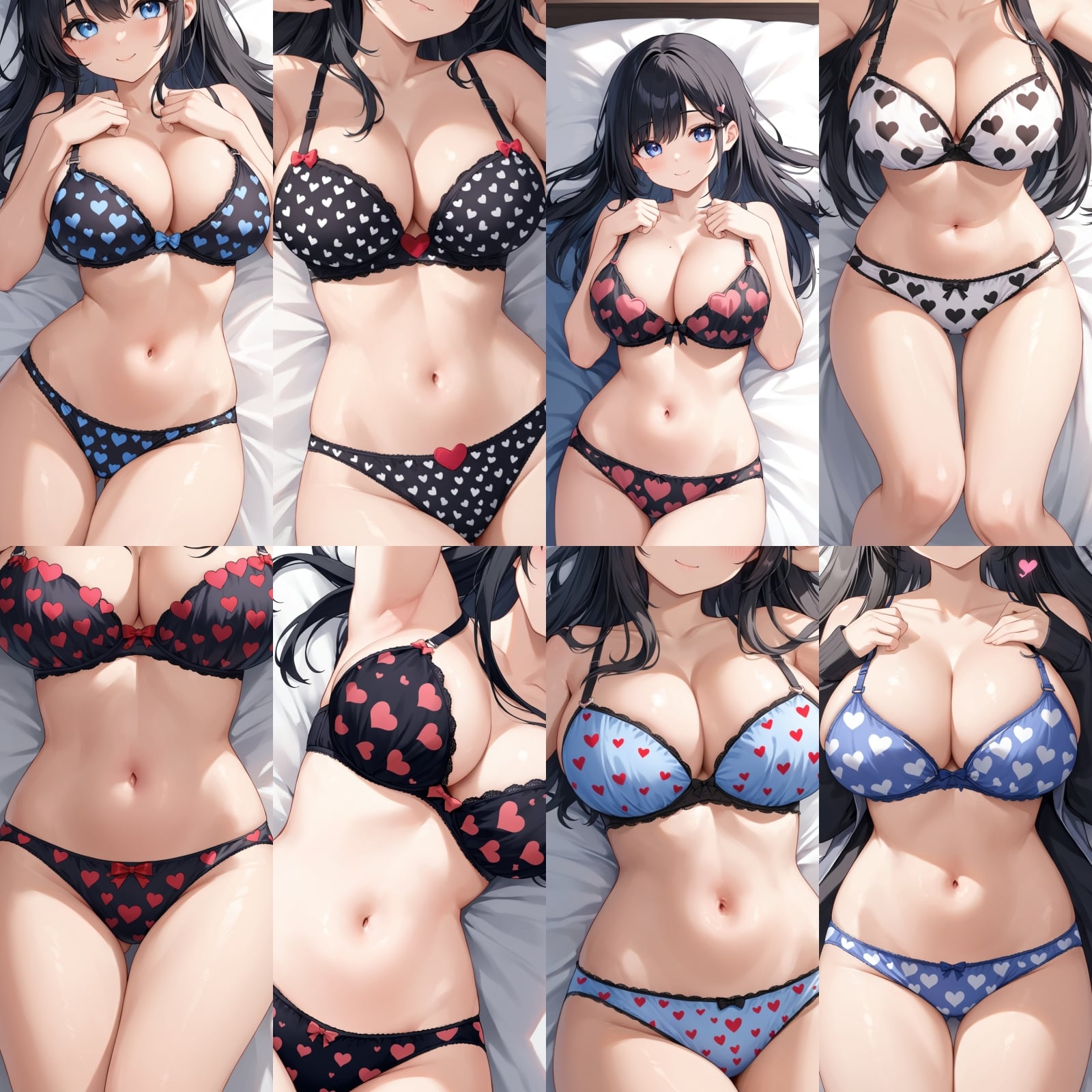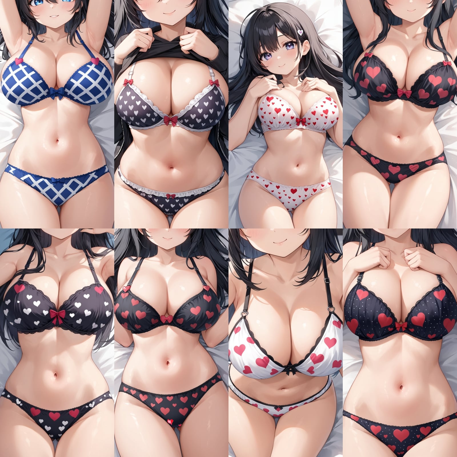 巨乳、下着、ブラジャー、パンティー、ドアップ、はーと柄
