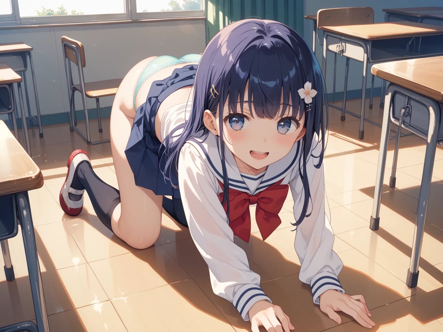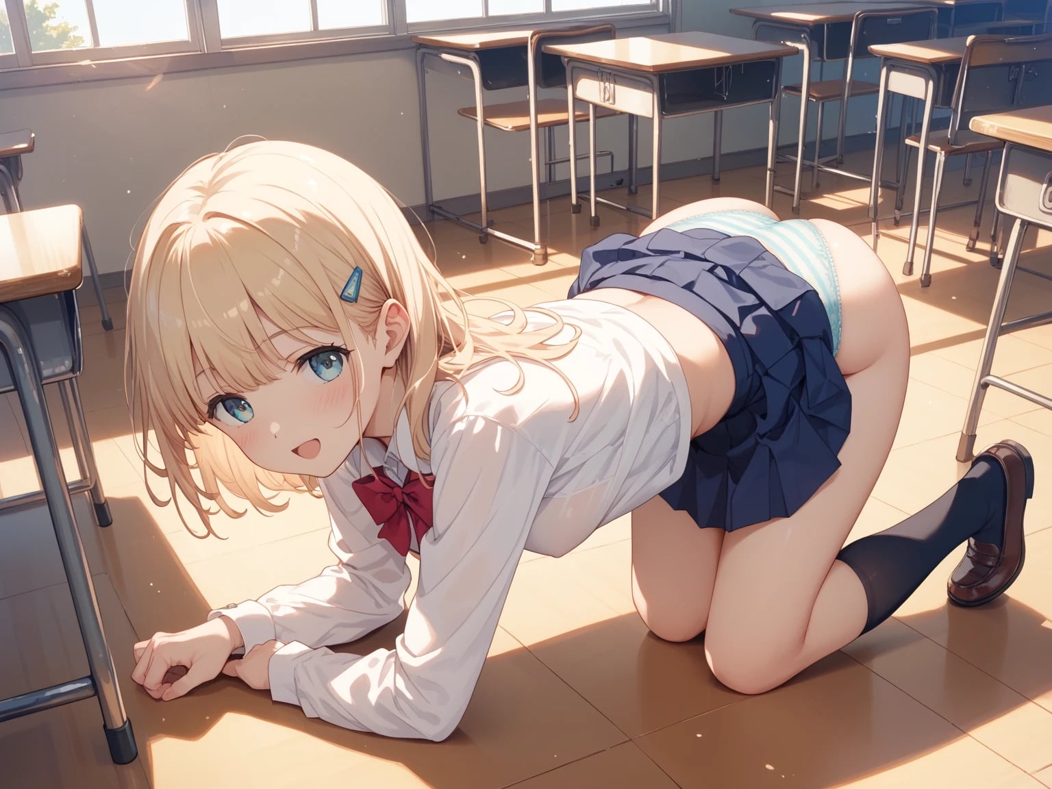 【イラスト53枚】文化祭でパンツ見せ店!制服ミニスカ、ワイシャツ、縞(しま)パンツ、純白パンティー、靴下、お尻、太もも、脚