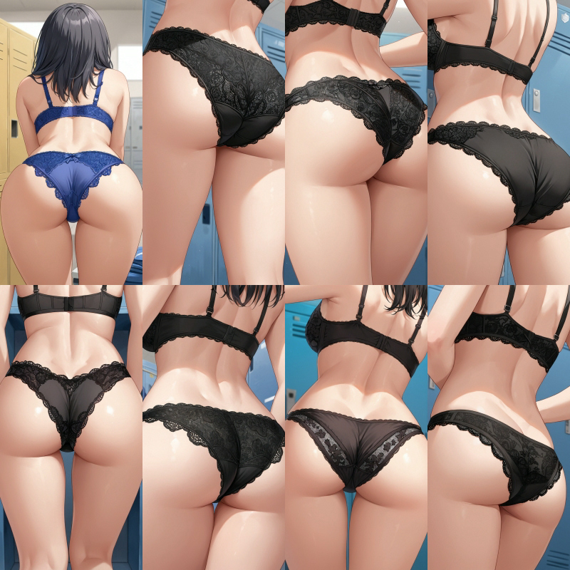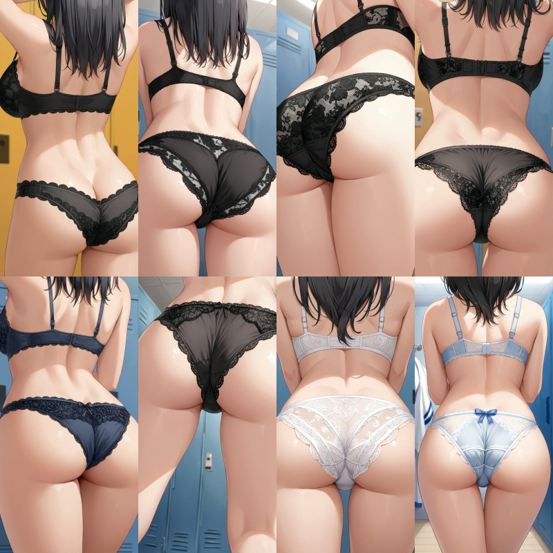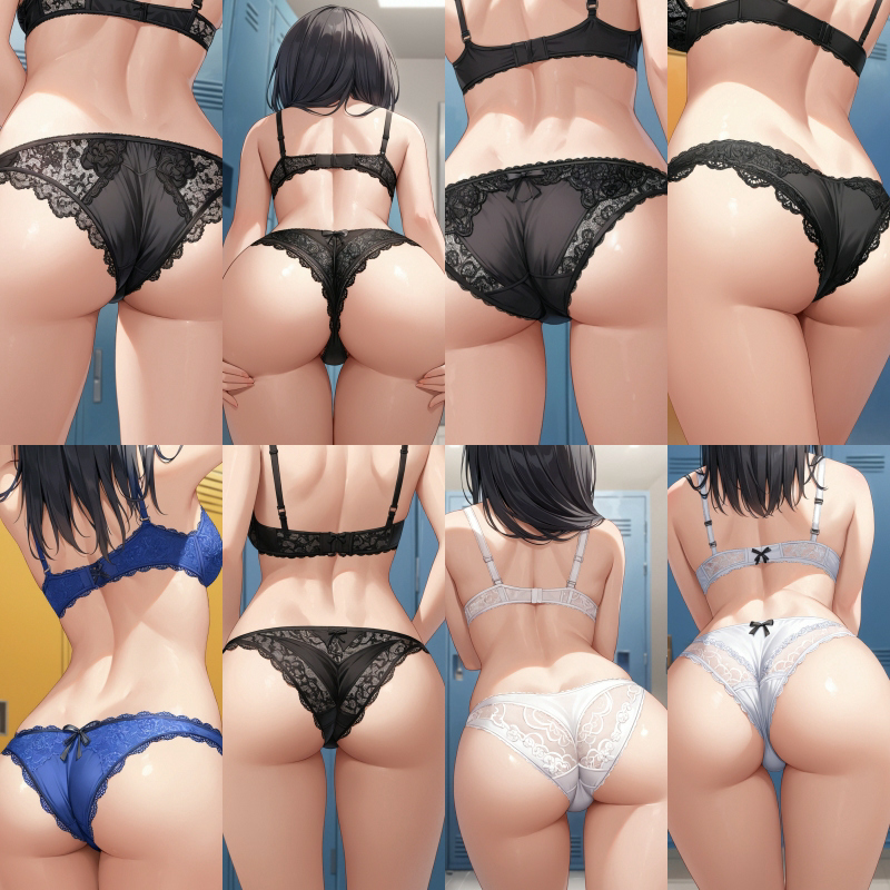 女子○○、後ろ姿、下着、ブラジャー、パンティー、レース、女子更衣室、お尻