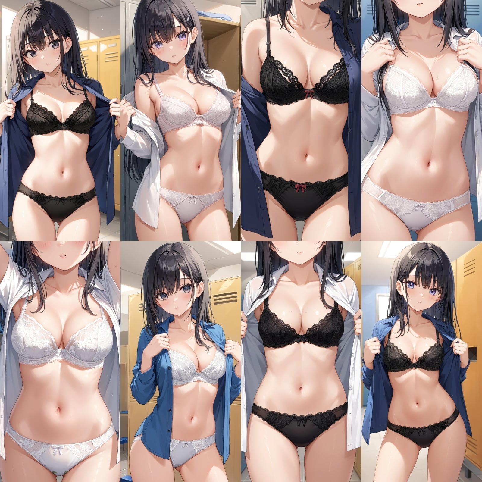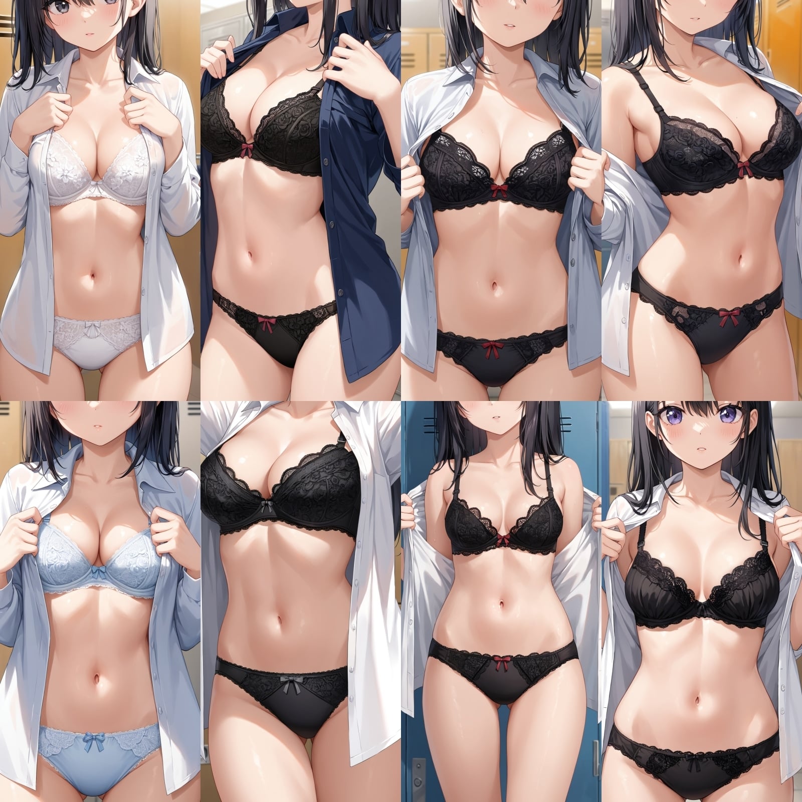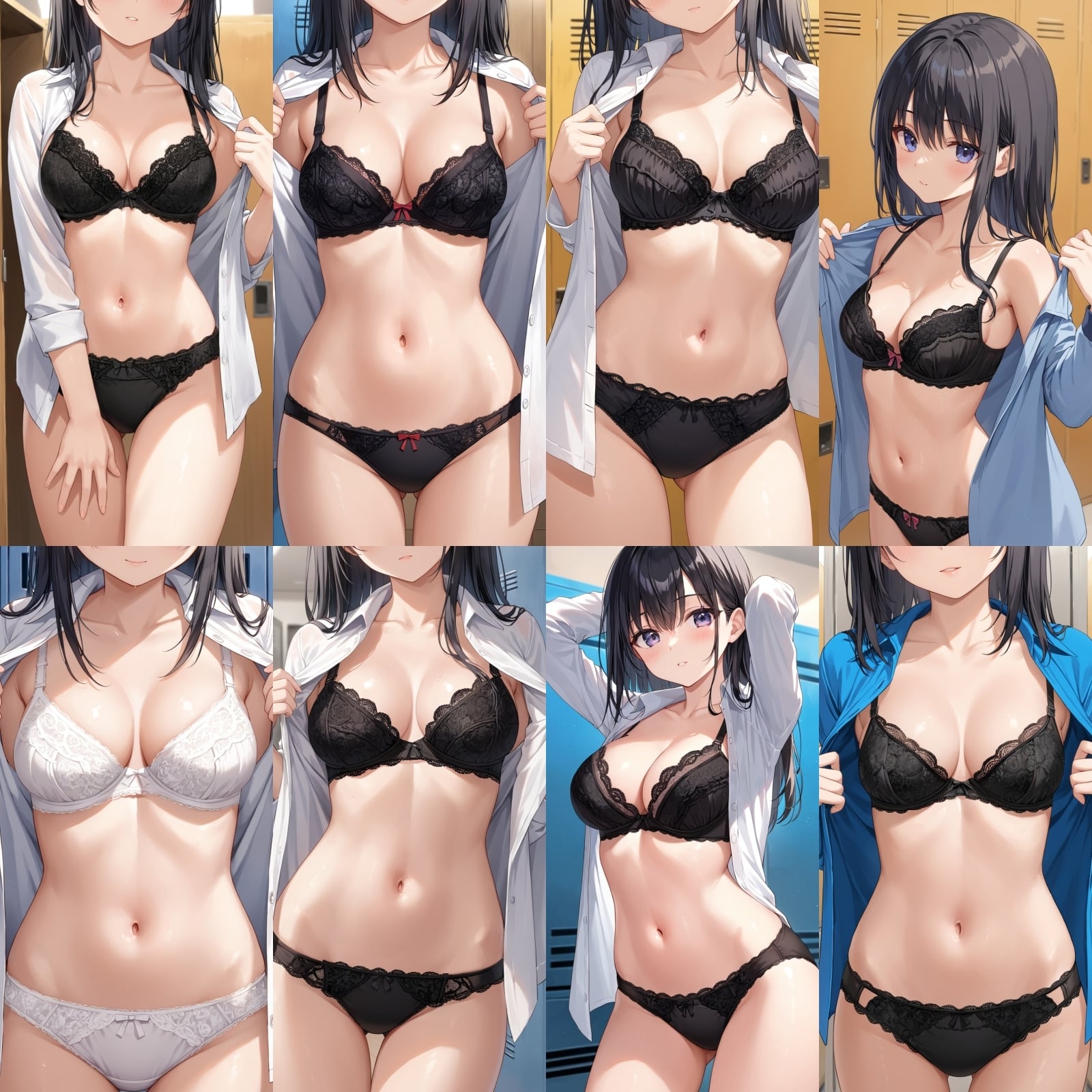 ○○、下着、ブラジャー、パンティー、シャツ、全身、女子更衣室