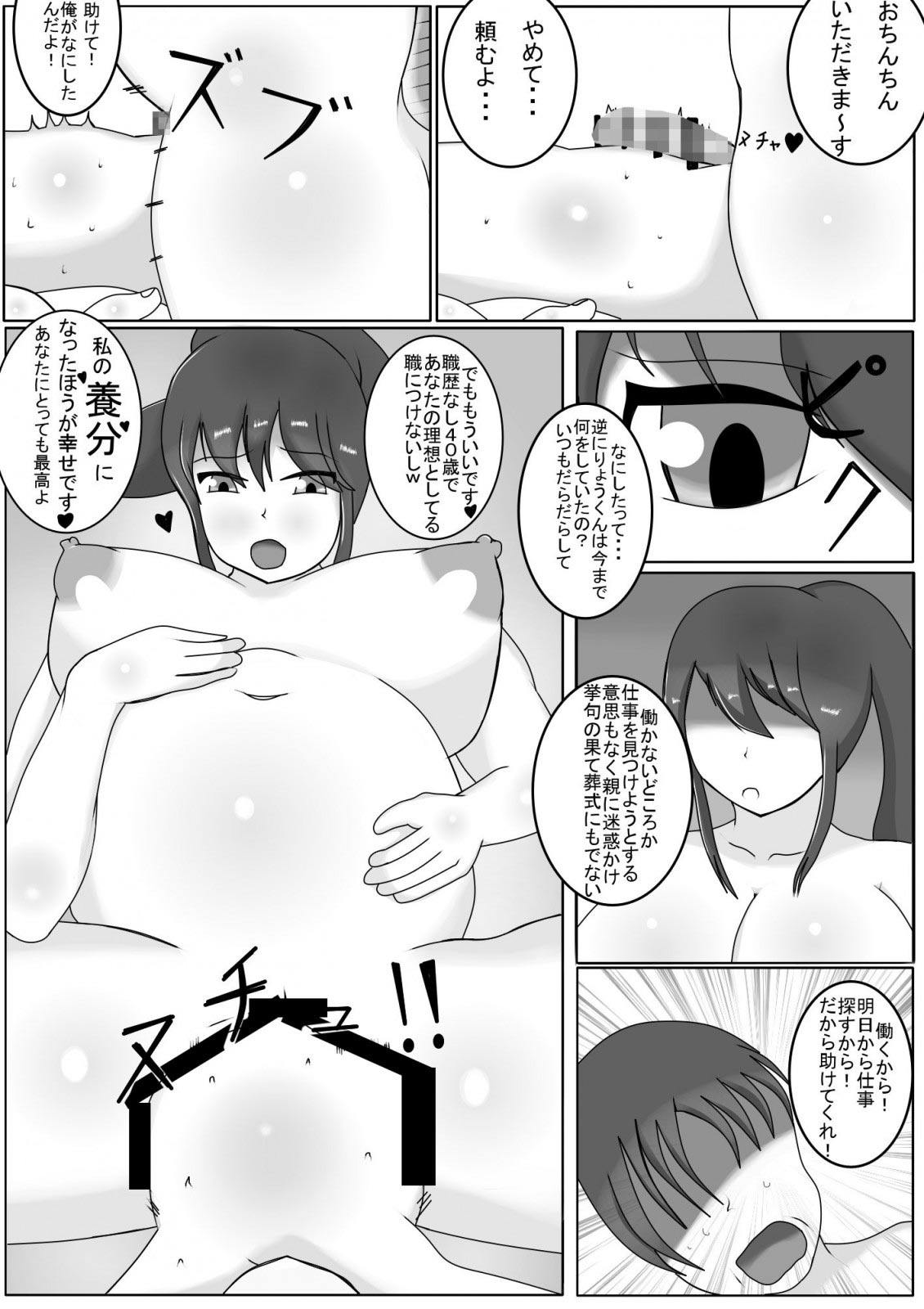 A female staff member (a non-human being) at a self-reliance support center appears to be helping a shut-in, unemployed man become independent?but things suddenly turn physical. Just as he lets his guard down while overwhelmed by pleasure, he is caught off guard and ends up being absorbed.